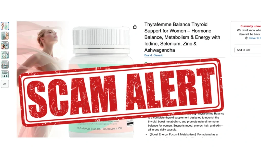 Unfortunately, many people are scammed when they order the Thyrafemme supplement because they are not using the official website to buy the supplement. Many people are ordering Thyrafemme on Amazon because is cheaper, and are getting fake Bottles.